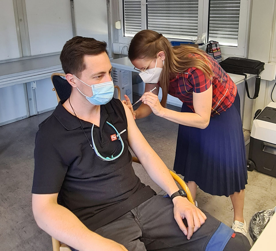 Seit 7. Juni dürfen Betriebsärzte gegen Corona impfen. Auch die Karl Knauer KG schaffte für ihre Mitarbeiter ein arbeitsplatznahes freiwilliges Impfangebot. Insgesamt erhielten 71 Personen ihre Erstimpfung mit BioNTech/Pfizer. Ende Juli ist die Zweitimpfung dran.