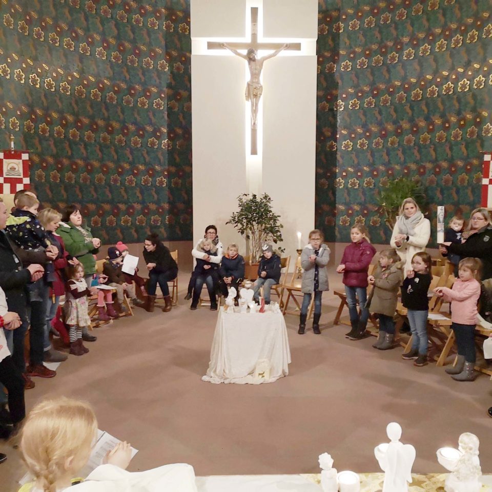 »Guter Gott, schick uns deine Engel.« Zum Abschluss des Jahres haben die Übungsleiterinnen des Kinderturnens gemeinsam mit der Gemeindereferentin Judith Müller eine weihnachtliche Feier zum Thema Engel in der Kirche vorbereitet.