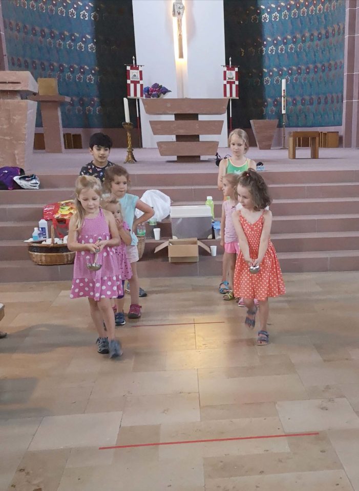 Am letzten Montag vor den Sommerferien luden die Übungsleiterinnen Mathilde und Kathrin die Kinder vom Montagsturnen in die Kirche ein.