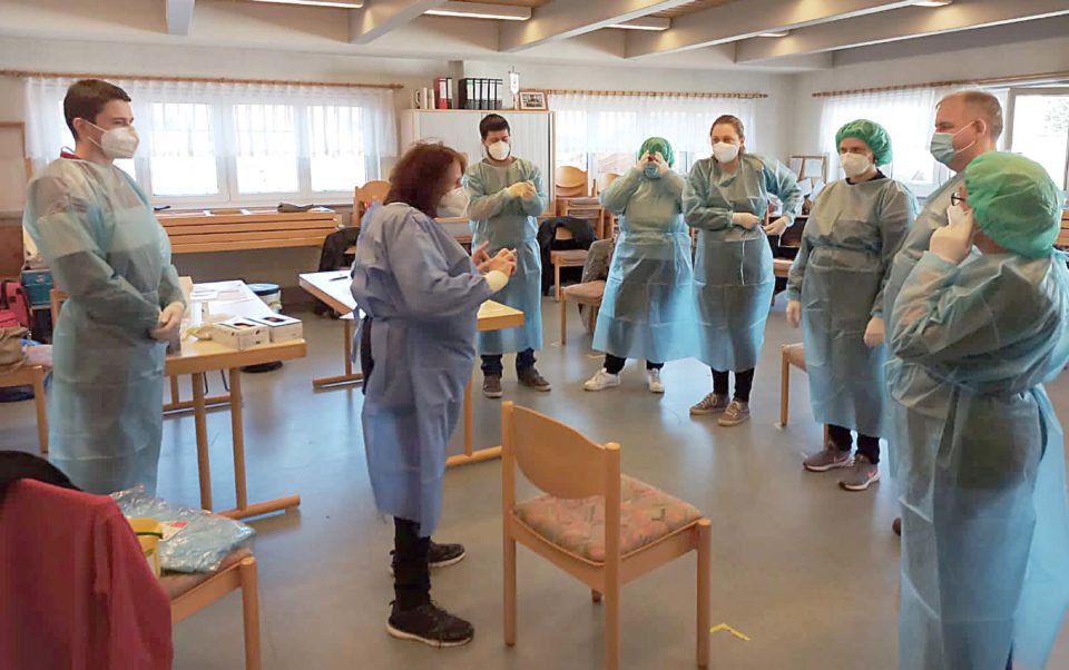 Am vergangenen Samstag wurden in Biberach im DRK-Heim acht Bereitschaftsmitglieder im Umgang und in der Handhabung mit Corona-Tests geschult.