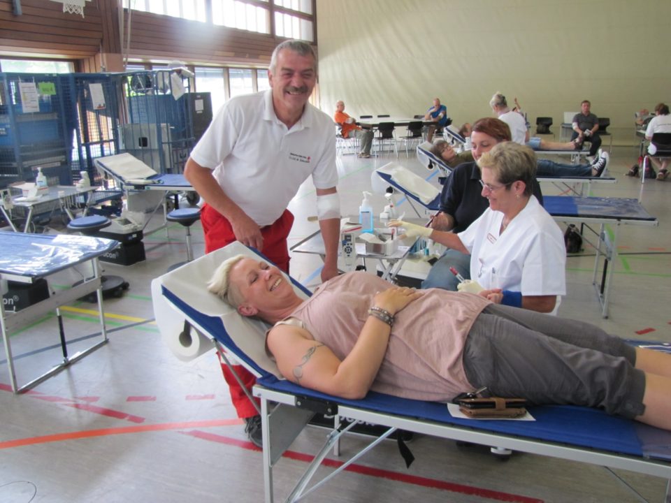 Am vergangenen Donnerstag fand in der Ritter-von-Buss-Halle ein Blutspendetermin statt, zu dem trotz des schwül-heißen Wetters viele Blutspender kamen.