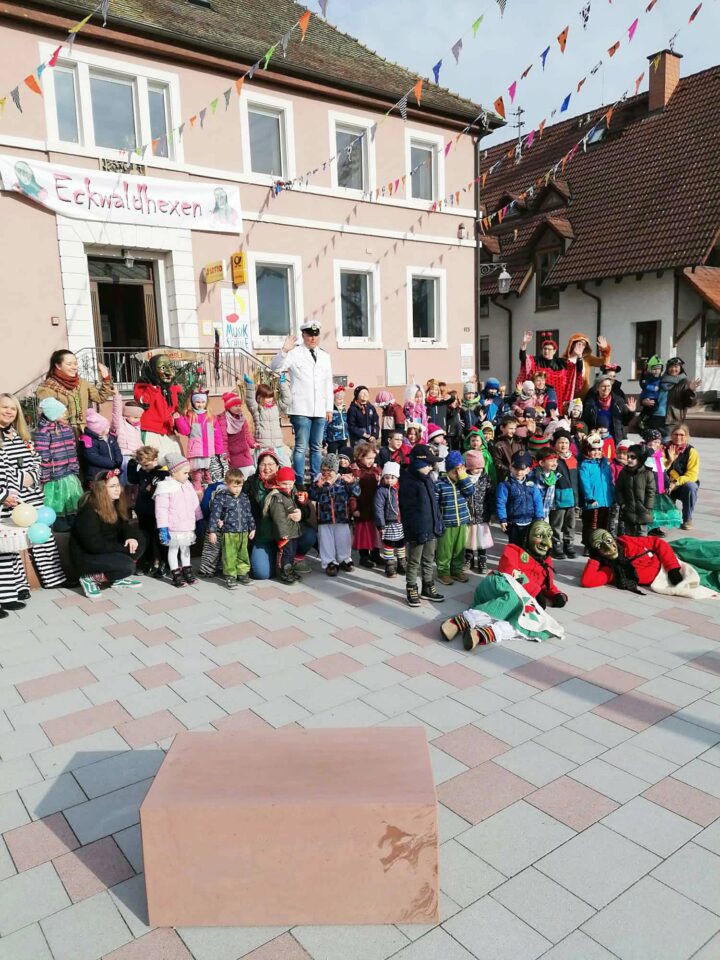 Kaum im Amt – schon wieder entmachtet. Nach einem närrischen Wettkampf musste sich Ortsvorsteher Ludwig Schütze gegen die Übermacht der Kindergartenkinder, der Eckwaldhexen und der Erzieherinnen geschlagen geben und den Rathausschlüssel herausrücken.
