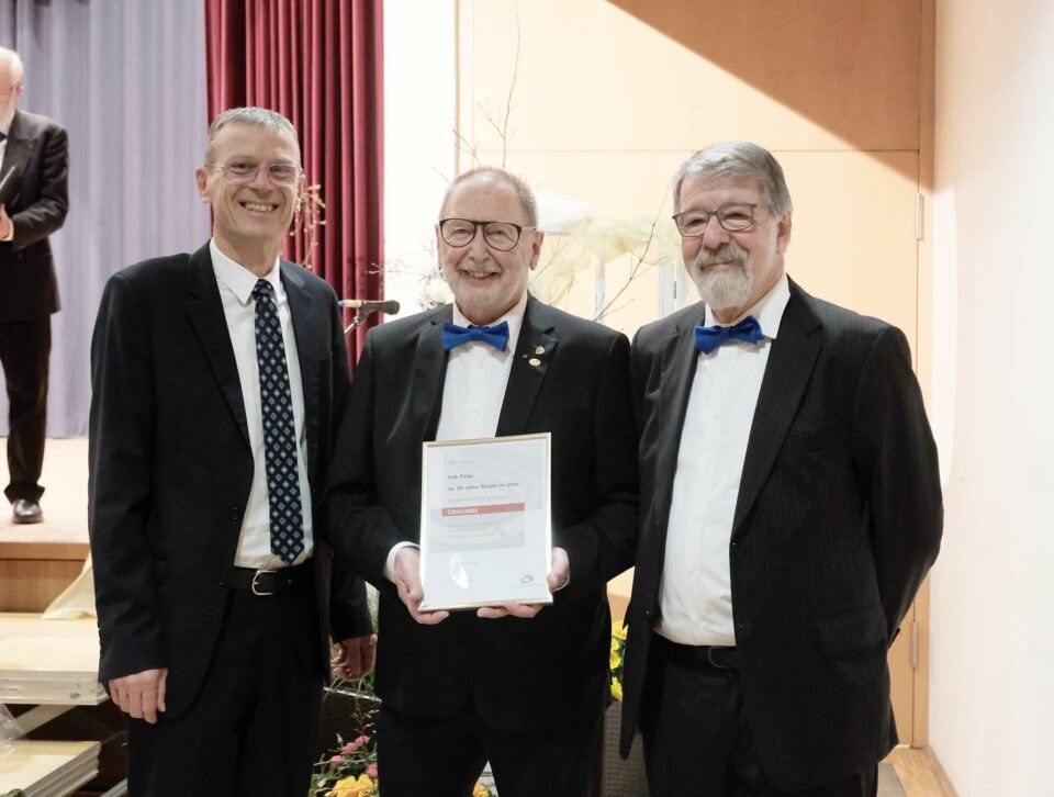 Im Rahmen des Konzertabends wurden drei Musiker für zusammen 160 Jahren aktive Mitgliedschaft geehrt.
