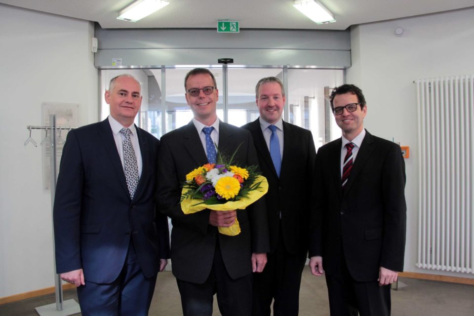 Im Rahmen einer kleinen Feierstunde gratulierten der Vorstandsvorsitzende Peter Rottenecker und Vorstand Reiner Richter dem langjährigen Mitarbeiter Mathias Hertwig aus Zell a. H. zu 25 Jahren Betriebstreue zur Volksbank Lahr.