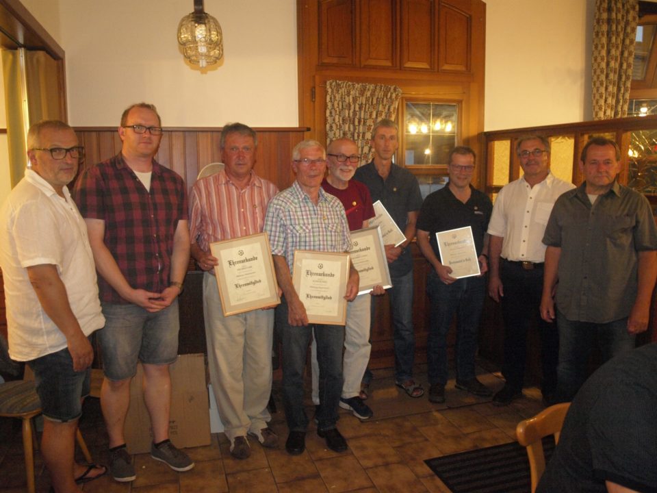 Es ist eine schöne Tradition, bei der Mitgliederversammlung langjährige Vereinsmitglieder zu ehren. Alfred Harter überreichte die Urkunden des Vereins. Kerstin Rendler vom Fußballverband übernahm die Ehrungen für langjährige Vorstandsmitglieder.