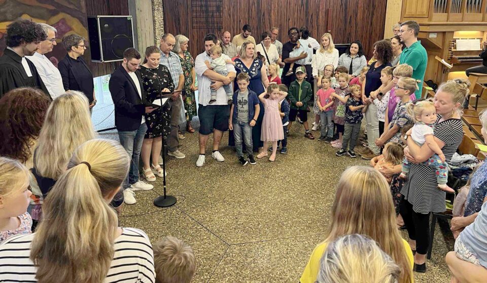 Das schöne Sommerwetter lässt auf sich warten. Im Rahmen des Gottesdienstes wurde Matteo Isenmann getauft.