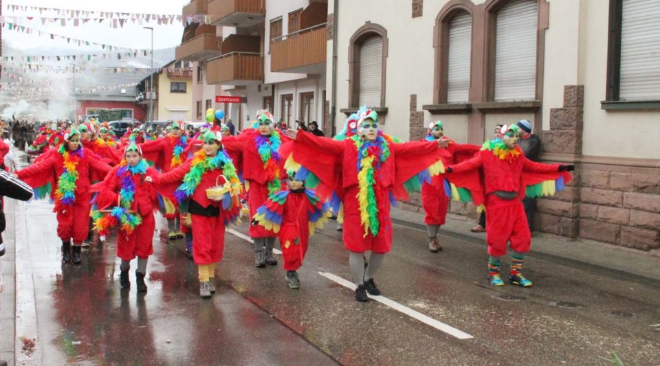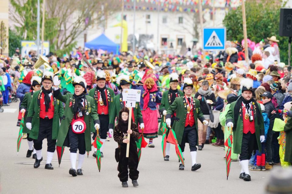 Sind die Nordracher noch müde vom großartigen Fasent-Jubiläumsfest? Jedenfalls kamen zum traditionellen Rosenmontagsumzug deutlich weniger Besucher als in früheren Jahren. Aber wer gekommen war, sah wieder einen feinen Umzug der sechs Nordracher Fasentgemeinschaften, die mit schön gestalteten Wagen vom Sportplatz bis zur Hansjakob-Halle zogen.
