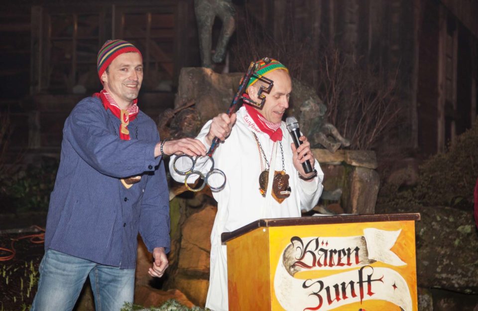 Groß war der Zulauf auf dem Platz in der Ortsmitte, als die Bärenzunft mit der Erstellung des Narrenbaumes und der Übergabe des Schlüssels zum Rathaus die Hochzeit der Oberharmersbacher Fasent einläutete.