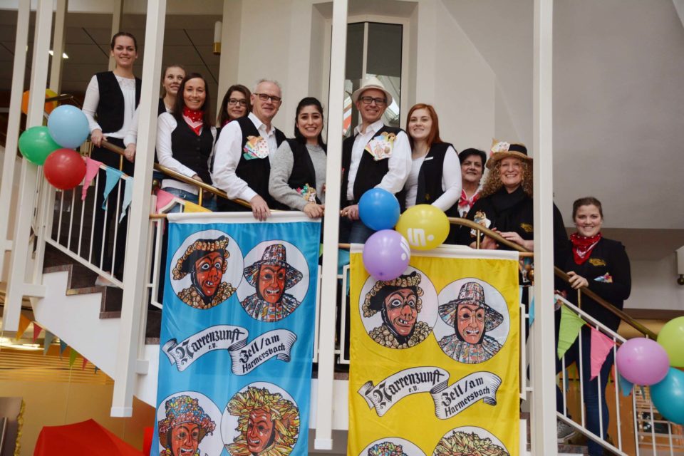 Nicht nur im Städtle Zell, sondern auch in der Sparkasse wehen die Narrenfahnen.