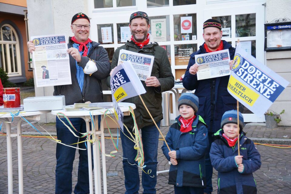 Beim Städtle-Markt am Samstag gab es nicht nur Gemüse, Brot und Wurstwaren, sondern auch närrische Vitamine: Druckfrisch konnte am Sonderstand der Dörfle-Bure die neueste Ausgabe der »Dörfle-Sirene« erworben werden.