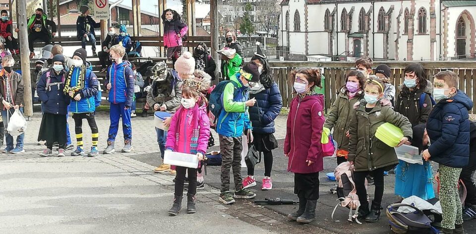 Ein Glück: Die Nordracher Grundschüler wissen noch, wie d‘Fasent geht. Am Schmutzigen hat eine kleine Fasnachtsfeier an der Grundschule stattgefunden.