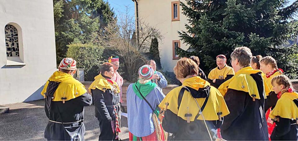 Nach dem Fasnachtsgottesdienst in Biberach am Fasnachtssonntag hat man sich zu einer kleinen närrischen Runde auf dem Kirchplatz getroffen.