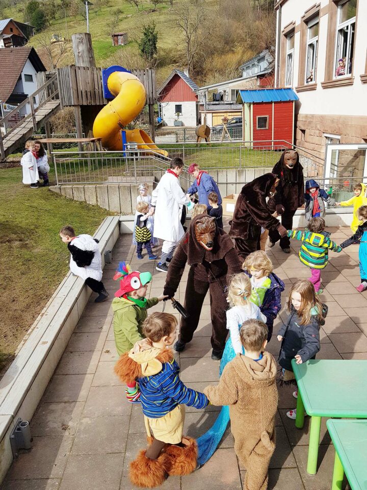 Die Kinder und Erzieher*innen hatten sich in diesem Jahr für Fasnachtszeit das Motto »Dschungel« ausgesucht. Mit großem Eifer wurden im Voraus die einzelnen Zimmer dschungelmäßig dekoriert. Es gab Palmen, Lianen, verschiedene Tiere und vieles mehr.