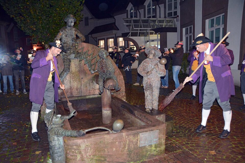 Bei der Brunnenputzede wehte der Zeller Narrengeist durchs Städle