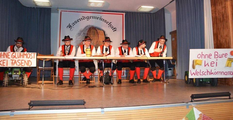 Schnapsbrenner Karl-Heinz und seine vier edlen Brände sorgten für Hoch genuss. Auch die Jugend, die Frauen und die Ortschaftsräte präsentierten sich in bester Narrenlaune.