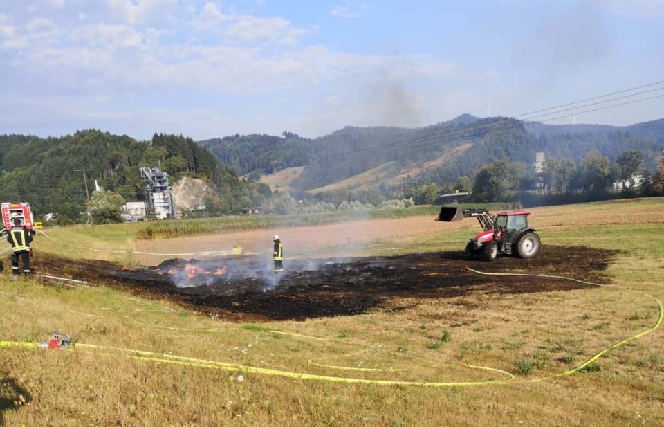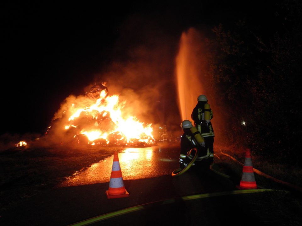 In der Nacht vom 31. Juli auf den 1. August wurde die Feuerwehr Biberach um 23.30 Uhr mit dem Alarmstichwort »mehrere Strohballen in Brand« alarmiert. Beim Eintreffen an der Einsatzstelle Nähe der Kinzig standen 40 aufeinander gestapelte Strohballen in Vollbrand.
