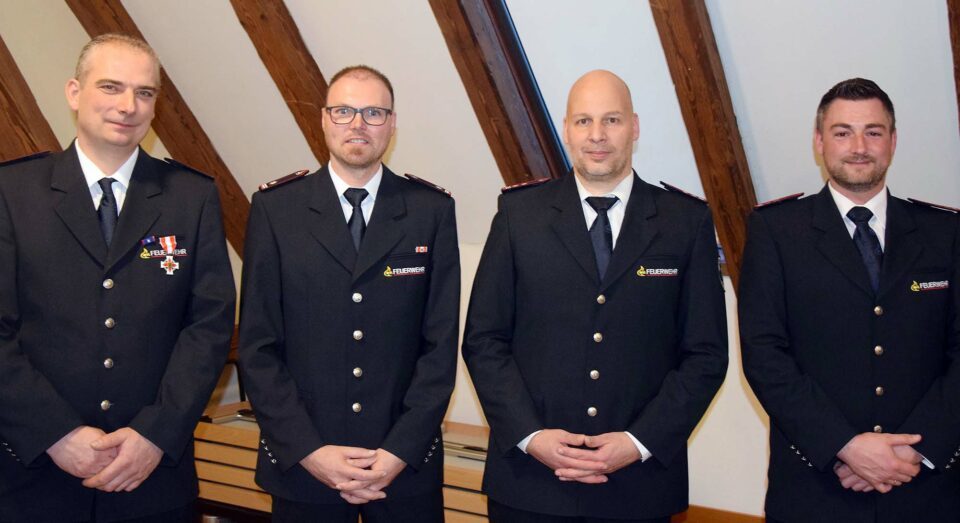 Kommandant Patrik Dreilich führt gemeinsam mit seinen Stellvertretern Jochen Cunico und Florian Möller die Biberacher Wehr für weitere fünf Jahre – danach soll aber Schluss sein – Nachfolger werden gesucht.