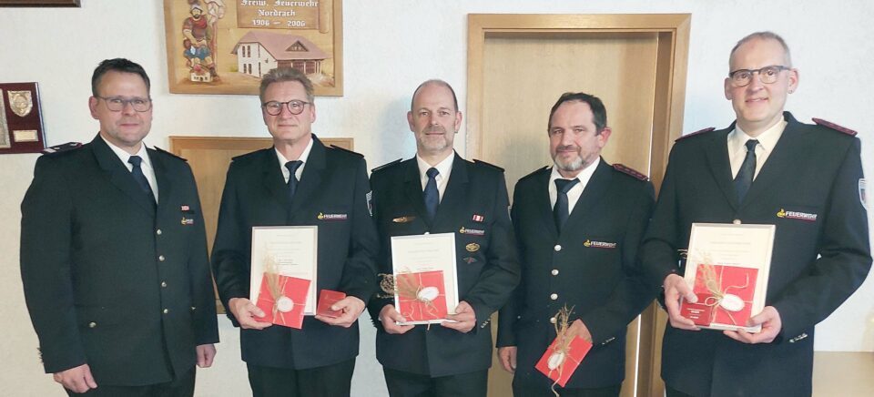 Bei der Jahreshauptversammlung der Nordracher Feuerwehr im Lehrsaal des Gerätehauses wurde über die vielzähligen Aktivitäten der Wehr berichtet und verdiente Feuerwehrangehörige geehrt. Noch im Herbst dieses Jahres kann mit der Auslieferung des neuen Tanklöschfahrzeuges gerechnet werden.