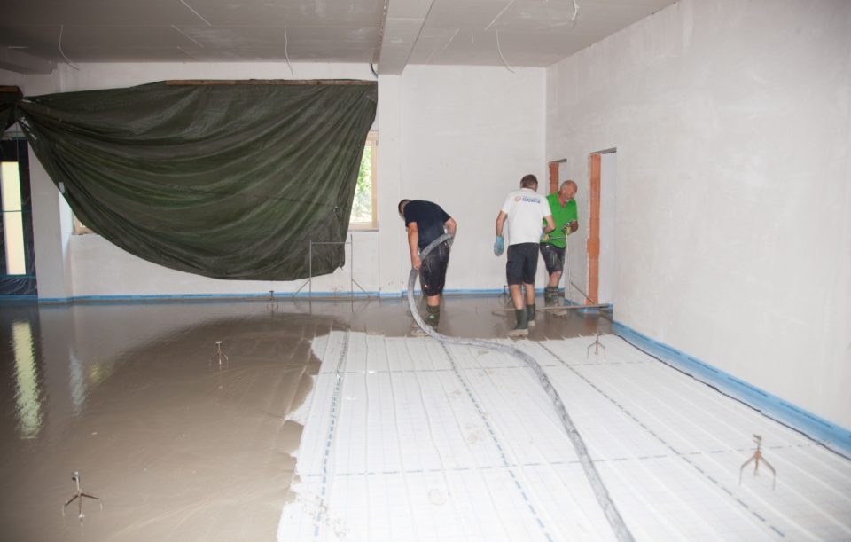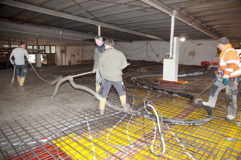 Die Arbeiten für das neue Feuerwehrhaus lassen Fortschritte erkennen. Nachdem die umfangreichen Armierungsarbeiten abgeschlossen waren, begann am Donnerstagmorgen das Gießen der Zwischendecke für die Mannschaftsräume im hinteren Teil des Gebäudes der früheren Schreinerei Kempf. Für die rund 270 Quadratmeter messende Decke wurden etwa 60 Kubikmeter Beton verarbeitet. Nach vier Stunden waren die Arbeiten abgeschlossen.