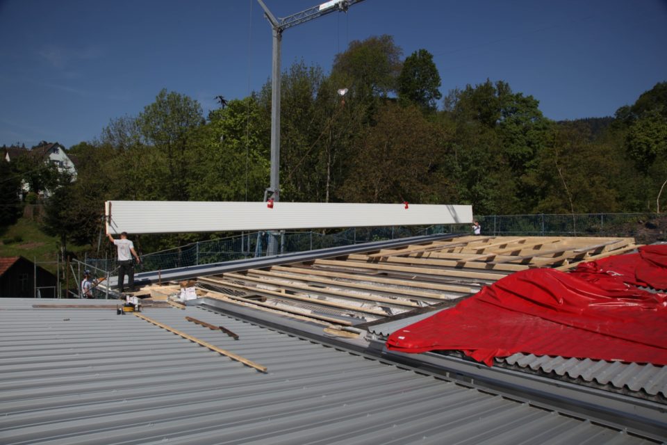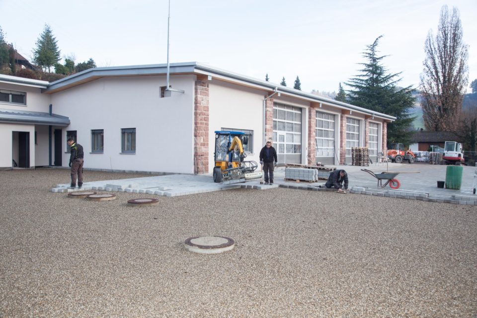 Nach einer längeren schöpferischen Pause laufen die Arbeiten beim Feuerwehrhaus weiter. Wegen Eindringen von Feuchtigkeit musste das Dach über den Mannschaftsräumen erneuert werden. Dadurch fielen zusätzliche Kosten von rund 70.000 Euro an.