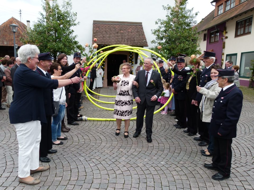 Spalier der Feuerwehr für Maria und Berthold Gutmann