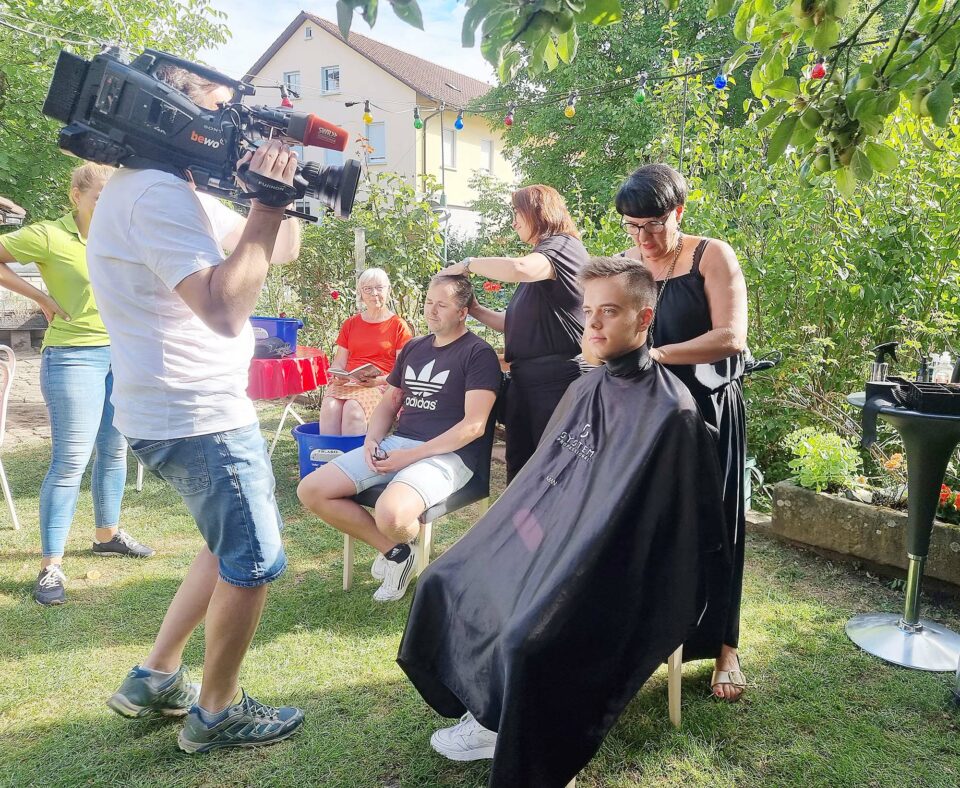Landesschau dreht für Wetterbericht im Figaro-Friseurgarten