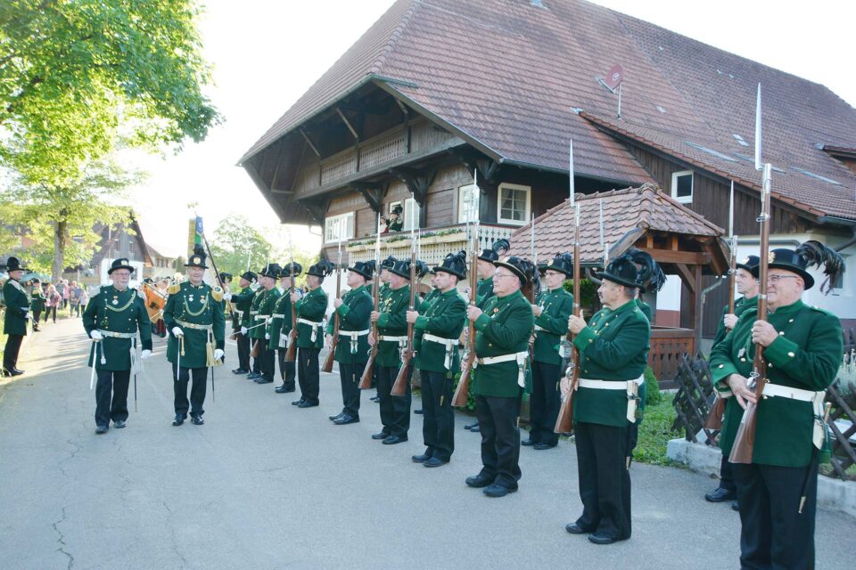 Die Abendsonne strahlte und mit ihr auch Paul Gutmann, der am Montag gutgelaunt seinen 70. Geburtstag feiern konnte. Ihm zu Ehren marschierte die Freiwillige Bürgerwehr der Stadt Zell am Harmersbach auf, um ihren langjährigen Kommandanten hochleben zu lassen.
