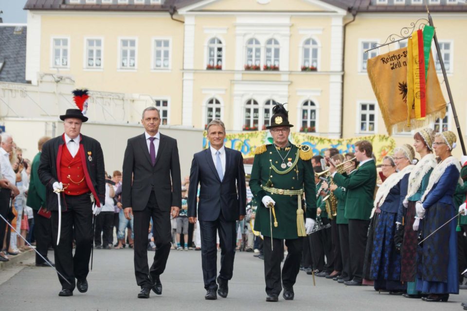 Traditionsgemäß wurde der Tag der Heimat mit einem Aufmarsch der Zeller Bürgerwehr mit Spielmannszug begangen. Die Stadtkapelle unterhielt die Besucher mit zünftiger Blasmusik. Zells Bürgermeister Pfundstein gab in seiner Rede nachdenkliche Anstöße zur Wertschätzung der Heimat. Bürgermeister Reiner Hentschel der Partnerschaft Frauenstein bedankte sich für den herzlichen Empfang.
