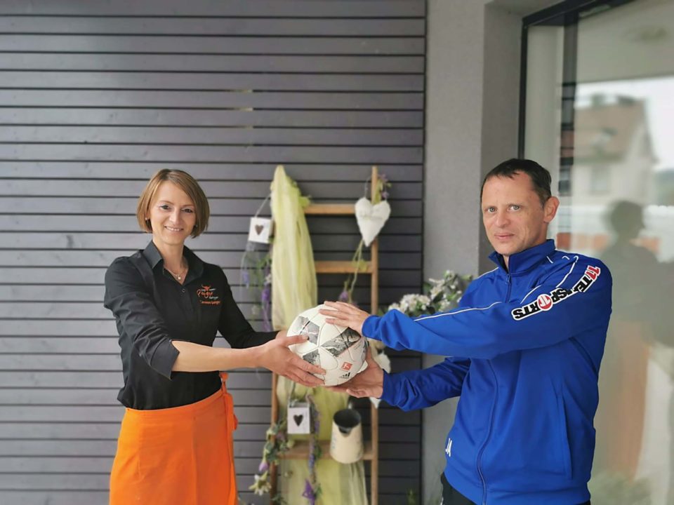 Metzgerei Geiger spendet Spielball zum Derby gegen den FV Biberach