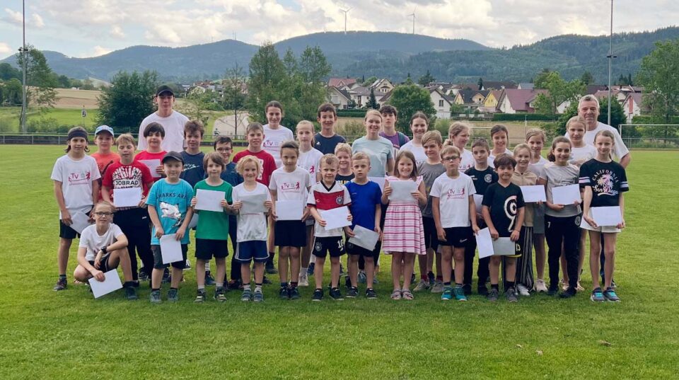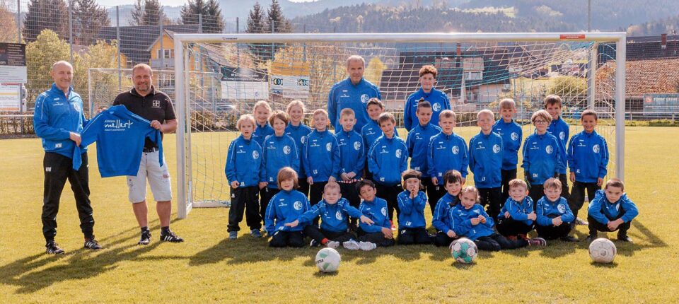 Stolz wie Bolle: G- und F-Junioren mit Trainingsanzügen ausgestattet.