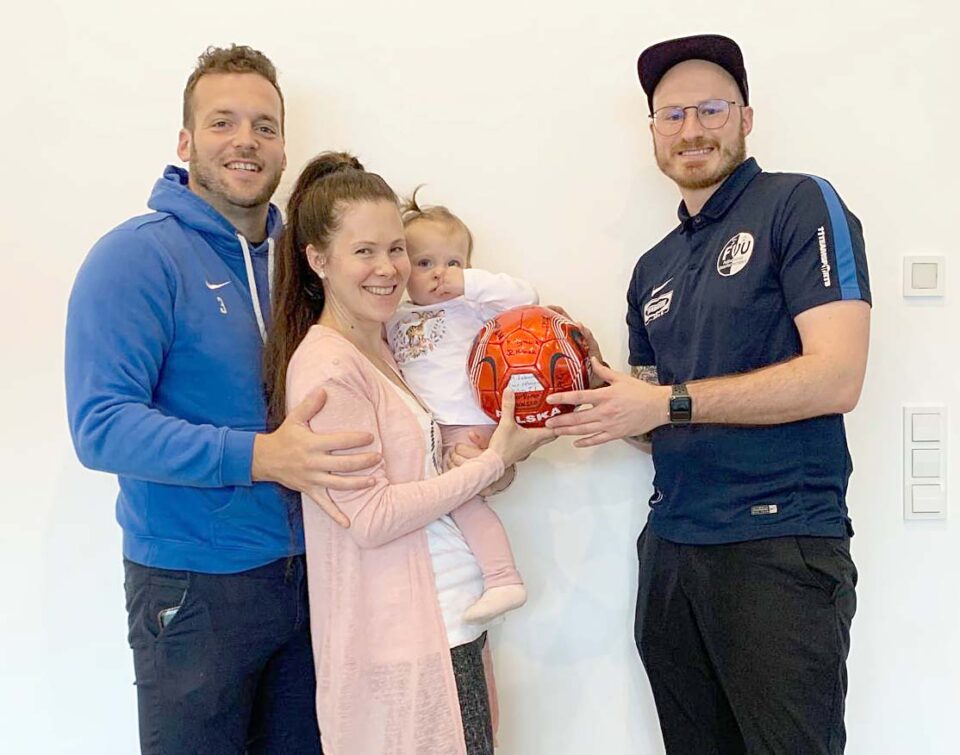 Fußballbegeistertes Trio spendet den FVU-Spielball