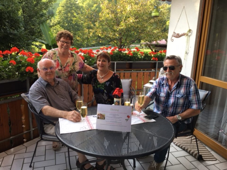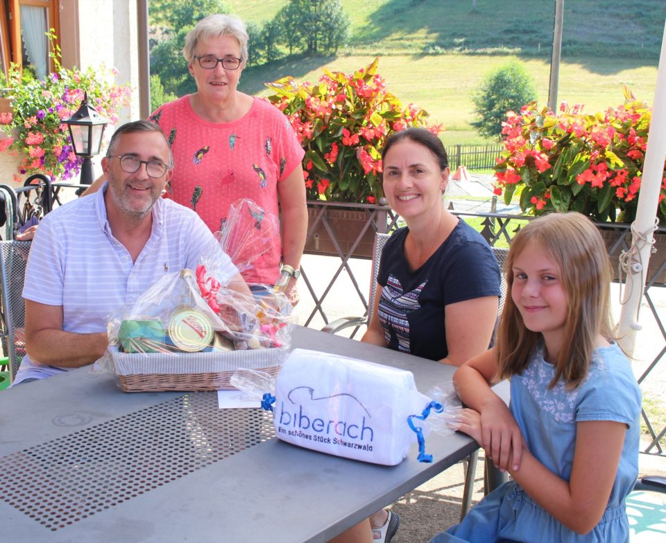 Bereits im Juli wurden bei strahlendem Sonnenschein Maria und Walter Carsten aus Gerolstein mit ihren Kindern Corina und Pascal und Elfriede und Gerhard Jung aus Beselich-Schupbach für 30 Jahre Urlaubstreue zu Oberharmersbach geehrt.