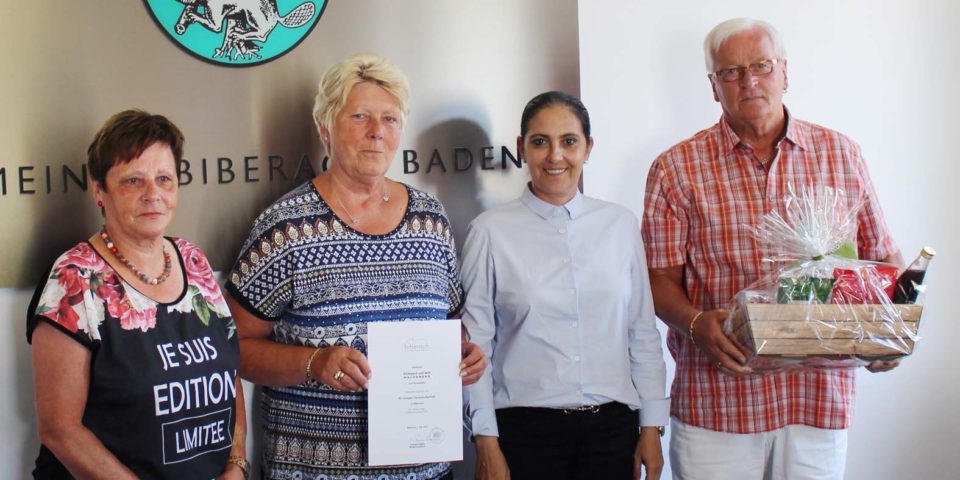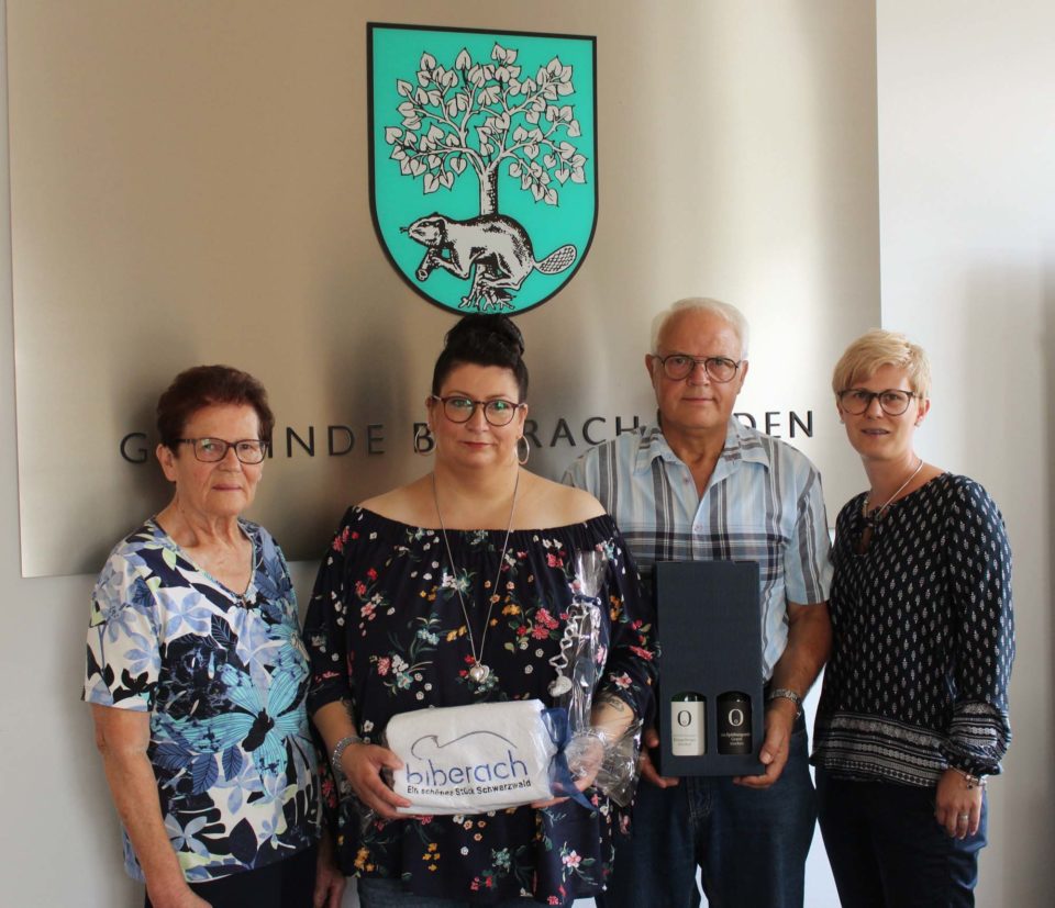 Das Ehepaar Mauermann aus Eschweiler freut sich über die Ehrung von Bürgermeisterin Daniela Paletta für 85 Urlaubsaufenthalte in Biberach.