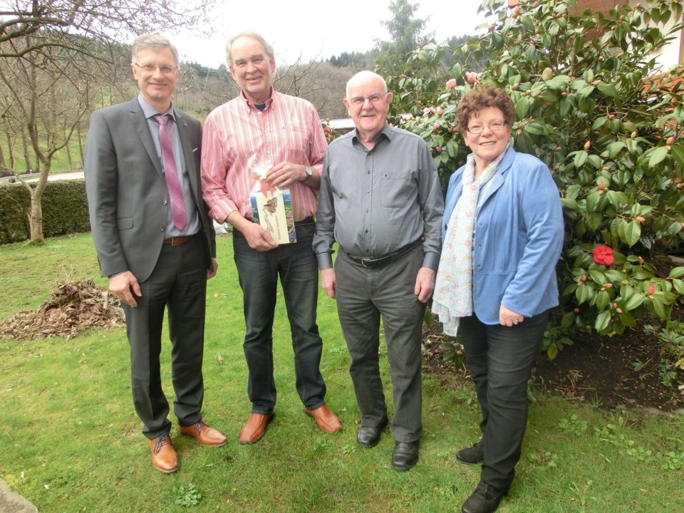 Das Ehepaar Philipps ist durch das Fernsehen auf Nordrach aufmerksam geworden und verbringt seither ihren Urlaub hier im Mittleren Schwarzwald. Beim jetzigen Aufenthalt wurden sie von Bürgermeister Carsten Erhardt für ihren 10. Aufenthalt in Nordrach geehrt.