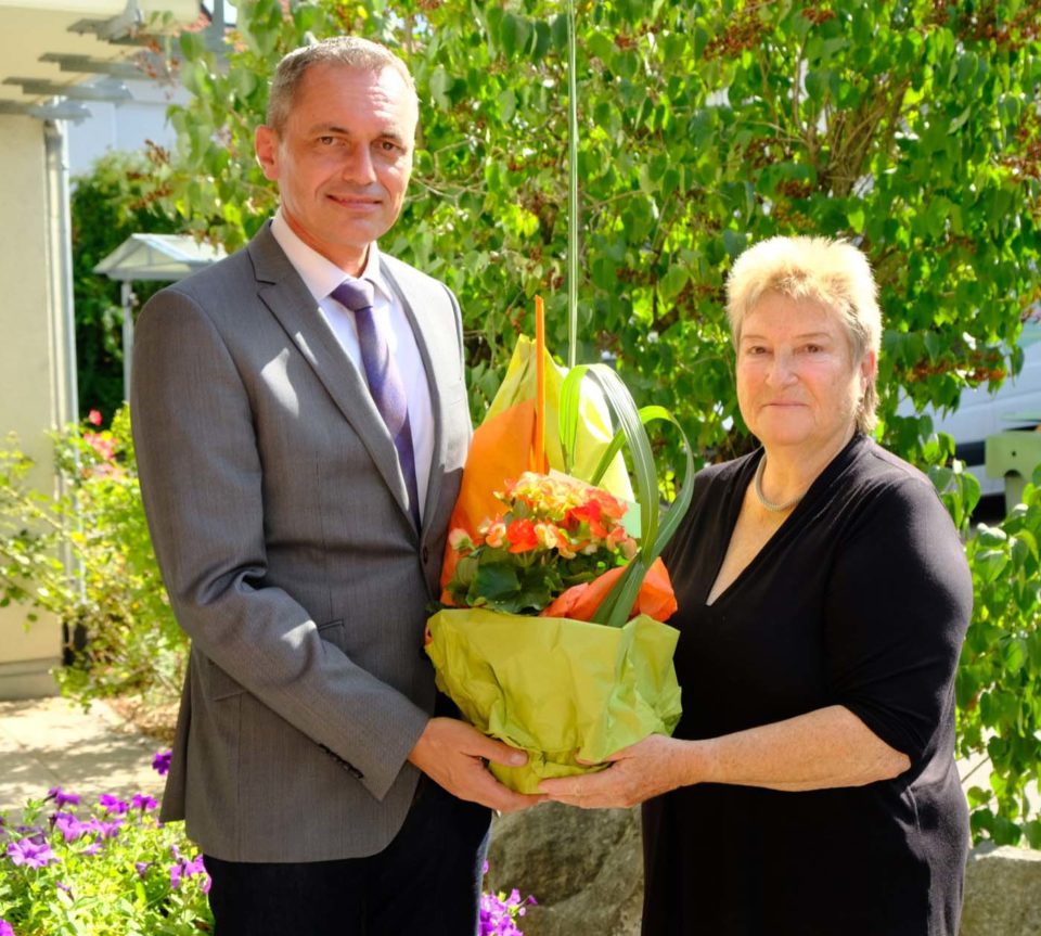 Am vergangenen Donnerstag feierte Werner Eckermann seinen 75. Geburtstag. Auch Bürgermeisterin Daniela Paletta kam zum Gratulieren in den Betrieb ins Ahfeld.