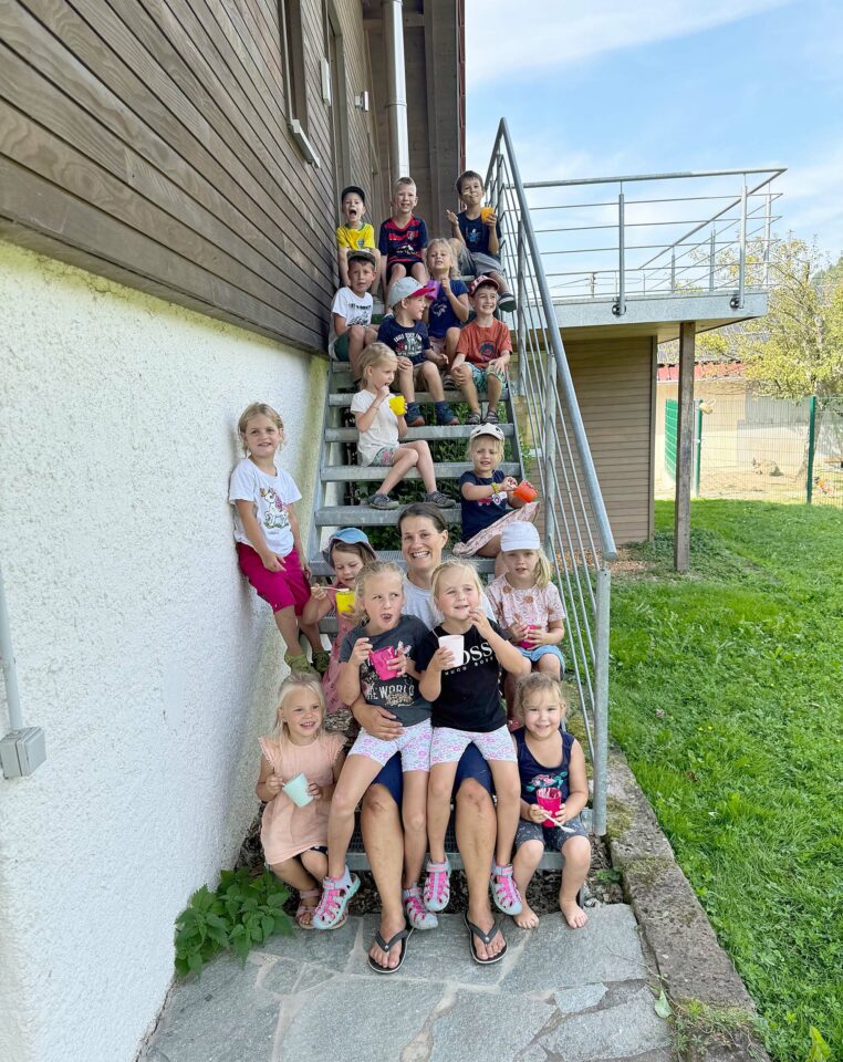 Bei über 30 Grad durften sich die Kinder auf die Produktion von leckerem Hofeis freuen. Zu Beginn erfrischten sich die Kinder aber erstmal mit einem Eimer voller Eiswürfel.