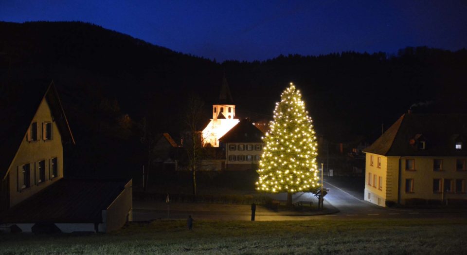 Schon seit über 30 Jahren wirkt der große Tannenbaum in Prinzbach zwischen der Schule und dem Rathaus in der Advents- und Weihnachtszeit als Blickfang für die Bevölkerung.