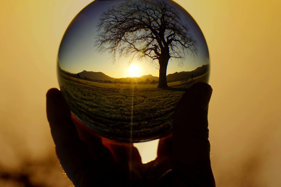 Die Biberacher Eiche fotografiert durch eine Kristallkugel.
