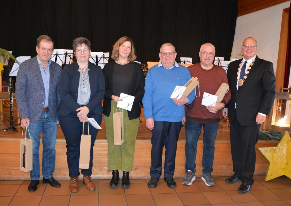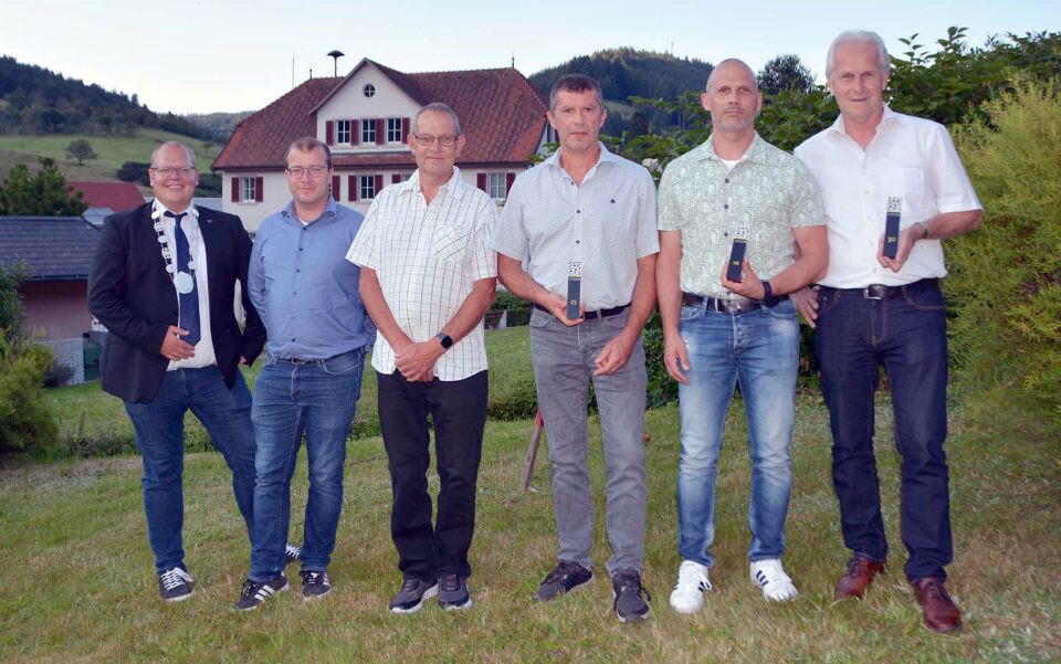 Ehrung für 30 Jahre Ratszugehörigkeit – und weitere fünf Jahre kommen hinzu. Auch Michael Schmieder und Christian Schwendemann wurden geehrt.
