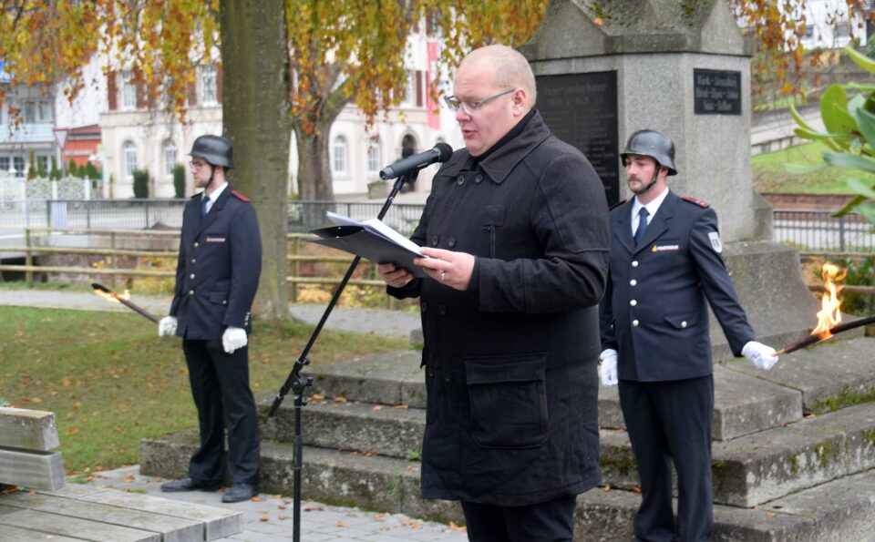 Gedenkfeier zum Volkstrauertag in Nordrach. Bürgermeister Carsten Erhardt mahnt zur Aufmerksamkeit und Einsatz für den Frieden. Deutschland müsse dankbar sein, dass seit 75 Jahren Frieden herrscht.