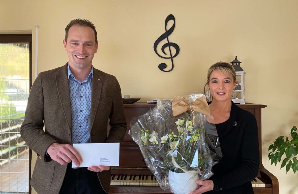 Bürgermeister gratuliert mit Blumen zum 10-jährigen Jubiläum