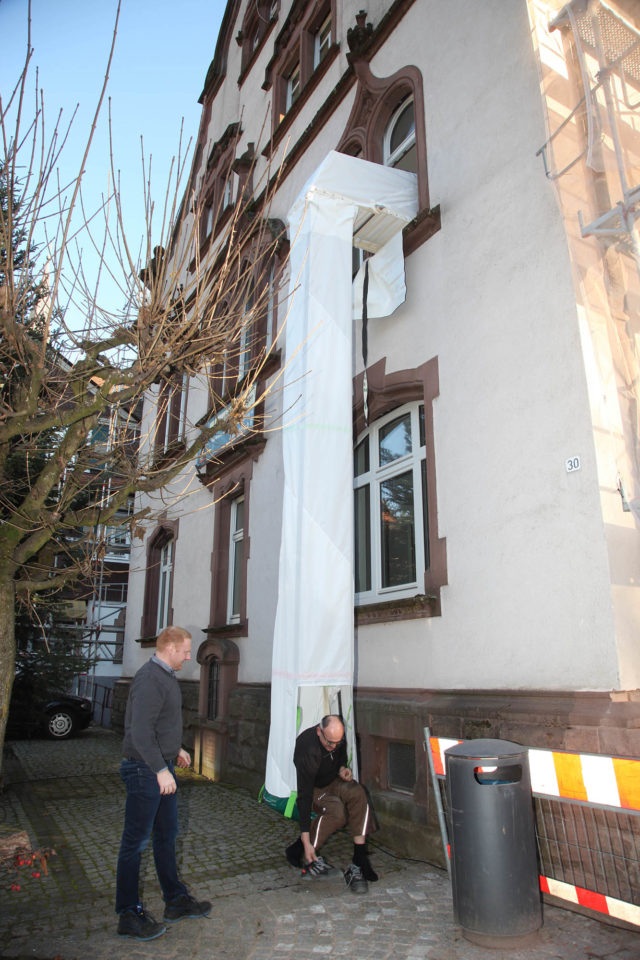 Wenn in zwei Monaten der Gemeinderat wieder an angestammter Stelle seine Sitzungen im sanierten Rathaus abhalten wird, können sowohl die Räte wie auch die zahlreichen Zuhörer ganz unbesorgt den Diskussionen folgen. Seit gestern ist ein Rettungsschlauch installiert.