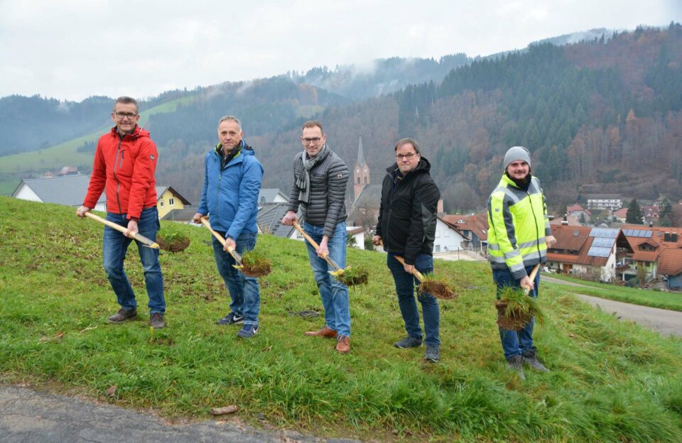 Mit dem symbolischen ersten Spatenstich hat die Gemeinde Oberharmersbach gestern die Erschließung des Wohngebiets »Elme IV« gestartet. Hoch über dem Dorf entstehen in traumhafter Wohnlage zwölf bis dreizehn neue Bauplätze.