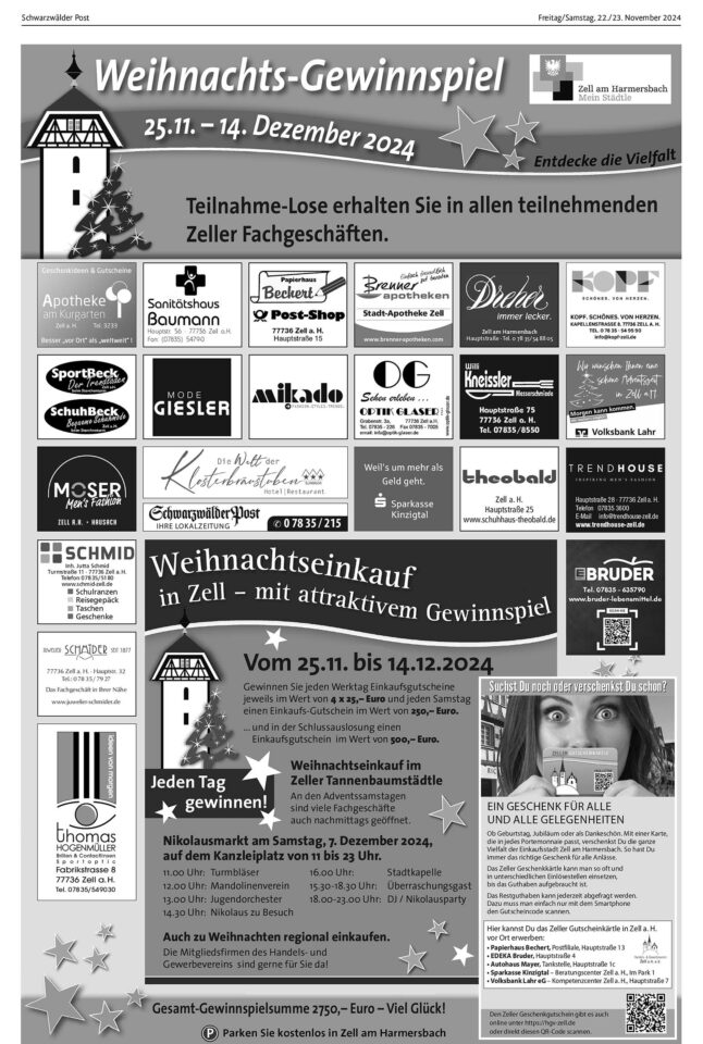 Auch in der vorweihnachtlichen Betriebsamkeit sollte man sich immer Zeit lassen und am Weihnachtsgewinnspiel der Zeller Fachgeschäfte teilnehmen.