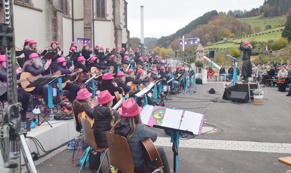 Der Gitarrenverein Nordrach lud am Sonntagnachmittag zu seinem Open-Air-Konzert auf dem Kirchplatz Nordrach ein. Rund 600 Besucher waren trotz Coronaregeln gekommen und erfreuten sich an Musik und Gesang.