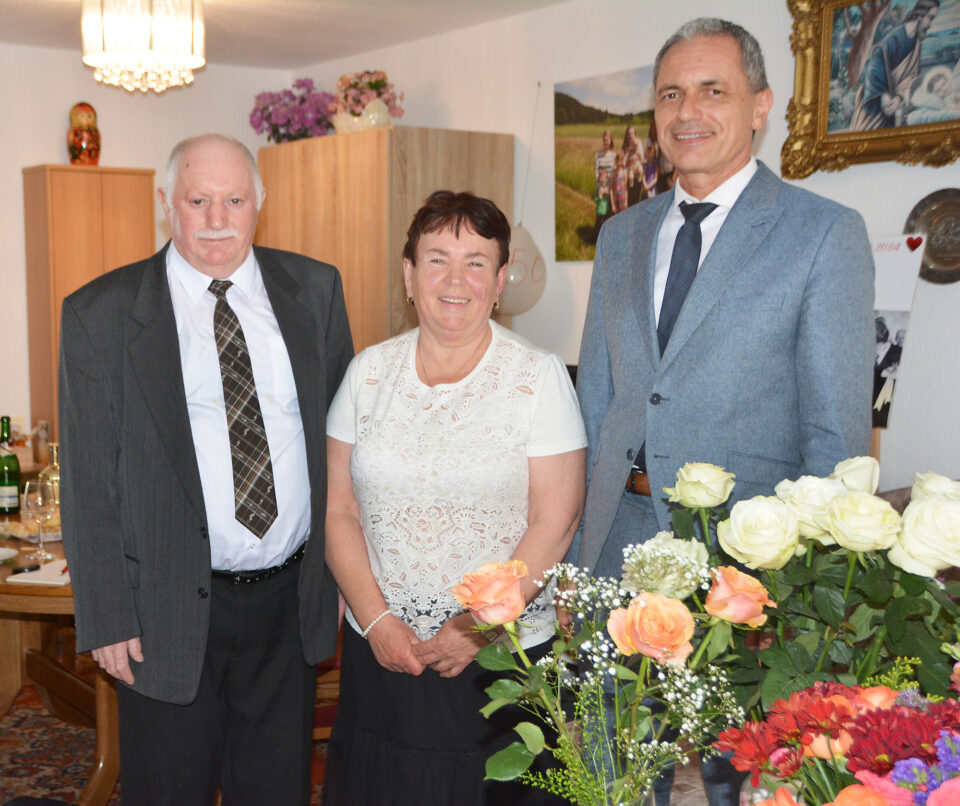 Der 50. Hochzeitstag war bereits am vergangenen Donnerstag, doch erst am Montag fand Bürgermeister Pfundstein den Weg zu den Jubilaren in die Bergstraße.