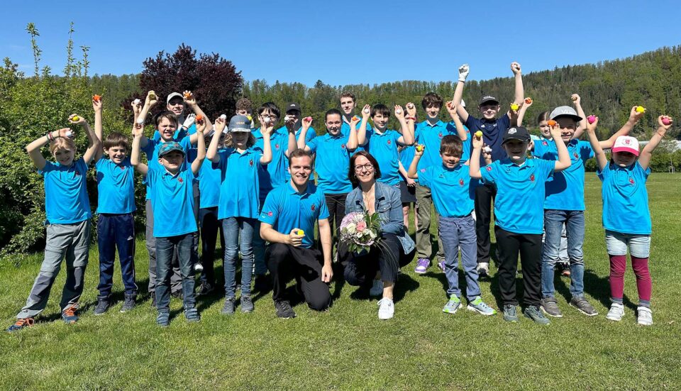 Die Golfjugend vom GC Gröbernhof präsentiert stolz ihre neuen Poloshirts, gesponsert von der Karl Knauer KG in Biberach. Geschäftsführerin Stefanie Wieckenberg (kniend) wird umringt von den begeisterten Kids.
