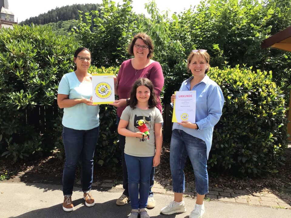 Die Grundschule Nordrach erhält das „Klasse2000“-Siegel für die langjährige Teilnahme an diesem Gesundheitsförderungs-Programm. Symbolfigur KLARO ist immer mit dabei.