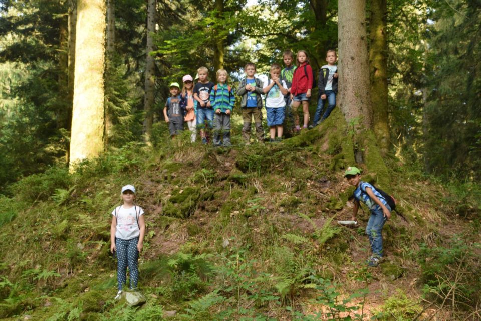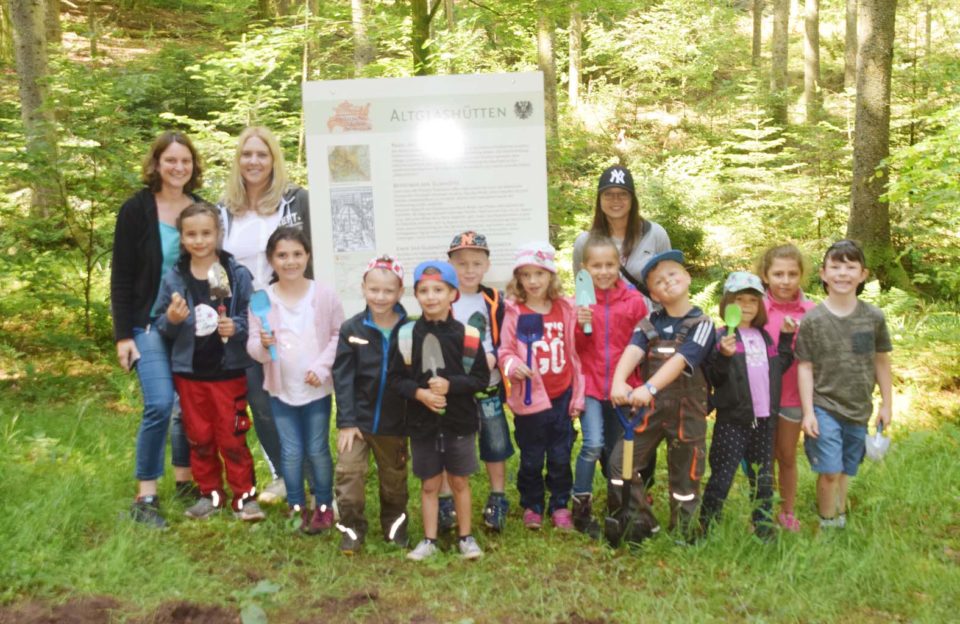 Am letzten Schultag vor den Pfingstferien erkundeten elf Nordracher Erstklässler die Höhenhöfe und Altglashütten. Die Erstklässler erwiesen sich nicht nur als erstklassige Wanderer, sondern waren auch mit Feuereifer dabei, im und am Glasbächlein nach Glasscherben zu suchen.