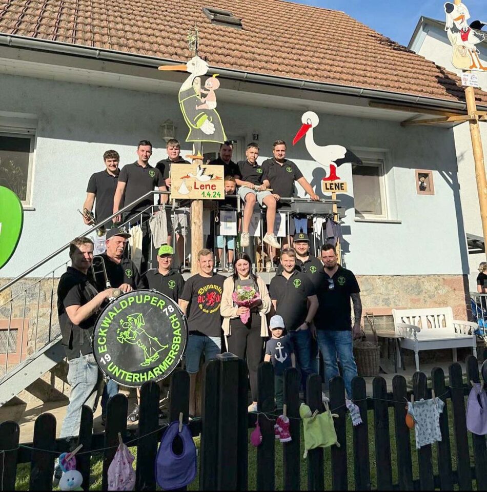 Am 13. April gab es für die Eckwaldpuper gleich zwei Feste. Zuerst besuchte man Sebastian und Larissa Totzke, um ihnen zur Geburt ihrer Tochter Lene zu gratulieren.